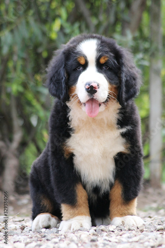 Bernese mountain dog puppy outside. Puppy in the kennel.
