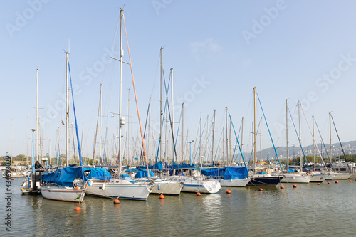 Berth parking with a large number of yachts in the Mediterranean Sea at the port of Haifa in Israel