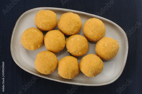 Besan ladoo, an Indian sweet dish made during festivals or celebrations like weddings