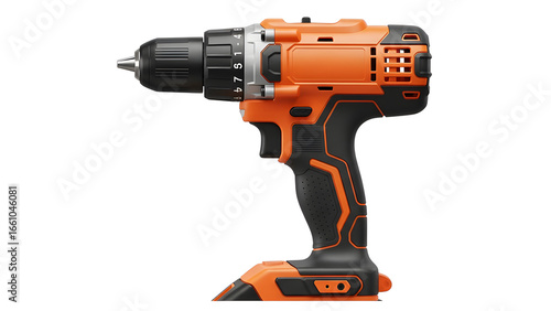 background, transparent, drill, driver, cordless, power, tool, orange, black, bricolage, project, home, improvement, construction, equipment, hardware, portable, electric, battery, chuck, grip, trigger, torque, speed, setting, work, repair, machine, industry, professional, technology, device, tooling, mechanism, component, plastic, metal, handle, design, modern, isolated, object