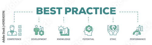 Best practice banner web icon vector illustration concept with icon of competence, development, knowledge, potential, ethic and performance