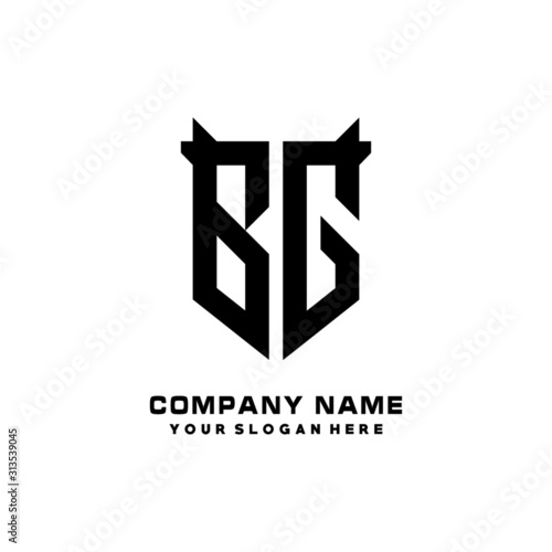 BG Initial letter Shield vector Logo Template Illustration Design, black and white color