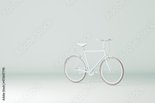Bicycle on green and pastel blue background. Minimal composition for social media , eco friendly transportation. Minimal creative idea layout, Concept for environment preserve on earth day. 3d render
