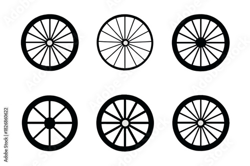 Bicycle Wheel Logos. Bicycle wheel. Icon set. Set Logo of bicycle wheel: abstract radial pattern. harmonious logo variations of the same emblematic concept,