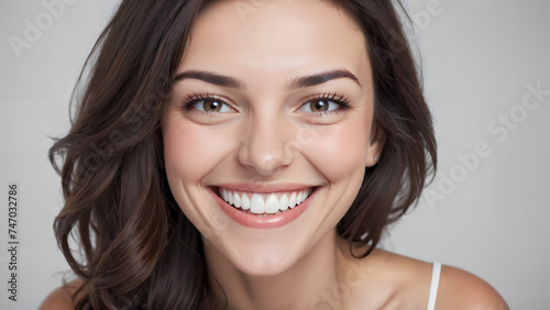 Big bright white smile with a beautiful woman happy cheerful positive expression