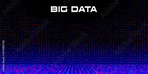 Big Data grid with Depth of Field Effect DoF. Vivid big data particles with bokeh effect and copy space. Linear perspective. Binary code structure. Abstract background. Vector