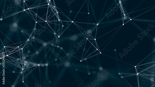 Big data visualization. Abstract background with connecting dots and lines. 3D rendering. High resolution.