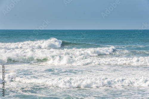 sea, ocean, water, wave, beach, wave, sky, surf, blue, coast, nature, shore, summer, sand, breaking, foam, cloud, landscape, horizon, tropical, sun, cloud, white, wind, travel, vacation, beautiful, seascape, storm, tide, nobody