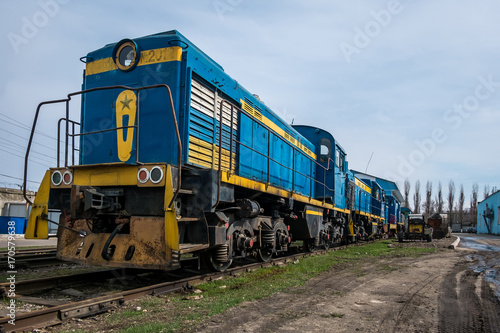 big russian locomotive in the repair workshop for old trains