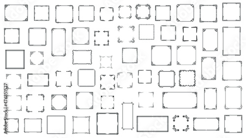 Big Set Black Simple Line Frame Collection Doodle Square Floral Frame Elements Vector Design Style Sketch Isolated Illustration For Banner