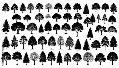 tree, silhouette, nature, forest, wood, vector, illustration, plant, leaf, tree branch, foliage, outdoors, set, natural, environment, landscape, greenery, flora, different, zone, wilderness, dark, shadow, growth, trunk, wild, timber, pine, oak, maple, bark, eco, ecosystem, evergreen, wood, botany, shrub, scenic, isolated, tall, shape, season, background, beauty, calm, peaceful, tropical, temperate, deciduous