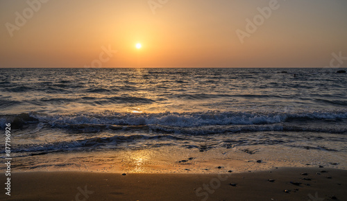 Big sun and sea sunset background. Nature composition.