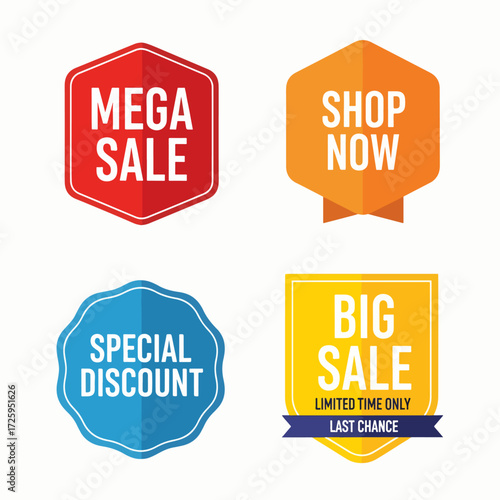 Big Vector set of promotional colourful labels and badges. Includes sale, discount, and special offer label collections. Vector illustration.