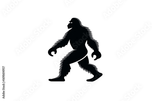 Bigfoot silhouette walking mysterious creature legend forest wild hairy upright cryptid black shadow animal myth folklore unknown outdoors wilderness beast illustration isolated side view nature