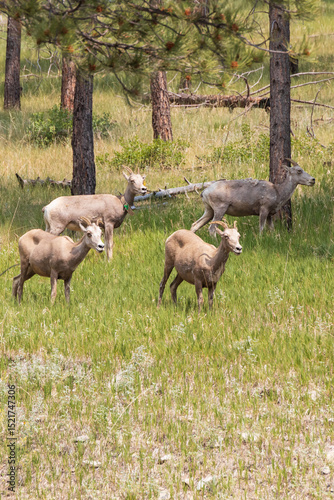 ram, animal, grazing, eating, grass, multiple, many, herd, sheep, brown, tan, fur, wildlife, mammal, wild, outdoors, nature, copy space
