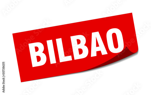 Bilbao sticker. Bilbao red square peeler sign