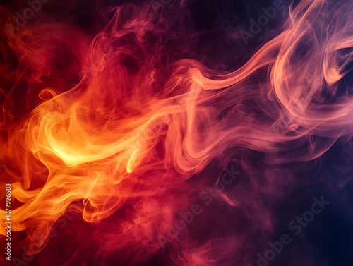 Billowing red and orange smoke clouds against a pitch-black background, creating a dramatic and abstract effect with intense contrast.