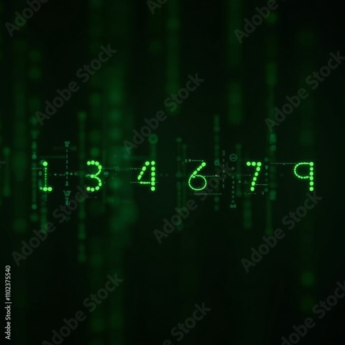 Binary code vector illustration with neon glowing numbers and letters on a black background, perfect for technology and business concepts