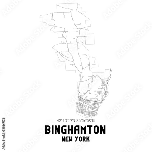Binghamton New York. US street map with black and white lines.