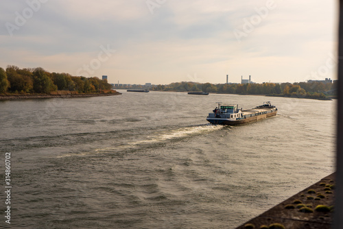 Binnenschiff von Hinten auf dem Rhein fahrend