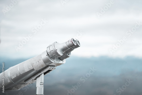 Binoscope. Binoculars on the viewing platform against the backdrop of the mountains