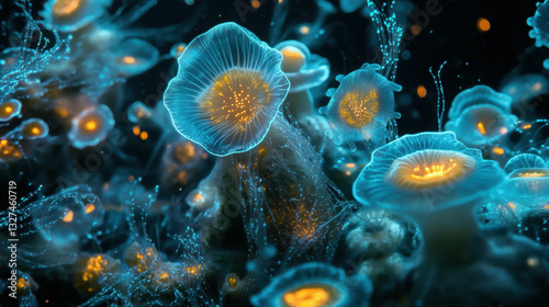 Bioluminescent algae with glowing overlay texture for nature and science themes