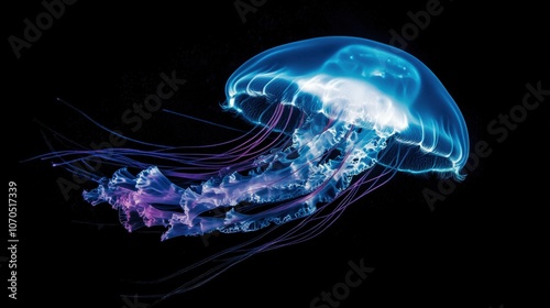 jellyfish, ocean, bioluminescence, glow, dark, deep, blue, purple, tentacle, underwater, marin, life, creature, animal, sea, nature, aquatic, abstract, background, pattern, texture, vibrant, colourful, aethereal, magical, fantasy, beauty, art, photo, stock, image, illustration, graphic, design, wallpaper, screen, mobile, desktop, print, poster, canvas, decor, home, office, gift, card, invitation, party, event