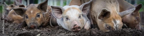 pig, pig, baby pig, sow, proboscis, outdoors, outside, banner, relax, play, farming, farm, peasant, liberty, luck, close-up view, alternate, sunshine, sun, dirt