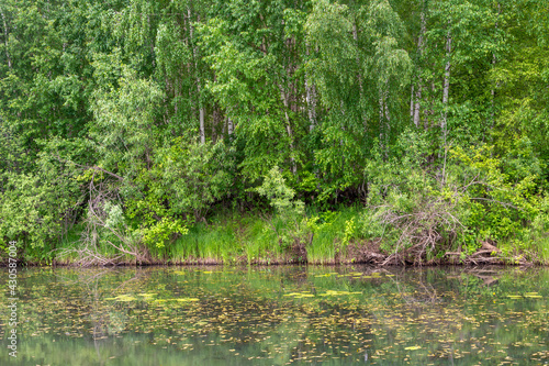 Birch-covered bank of the small river Ekitage