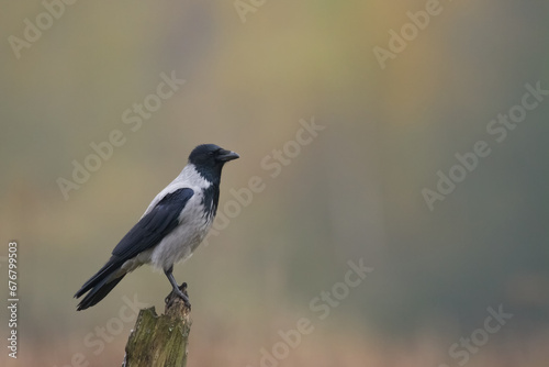 Bird - Hooded crow Corvus cornix in amazing blurred background Poland Europe