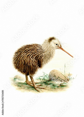 Bird art. Vintage-style Kiwi illustration.