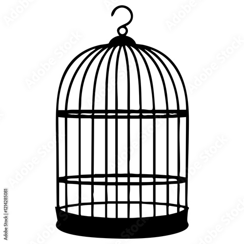 bird, cage, silhouette, illustration, art, style, clean, transparent, background, isolated