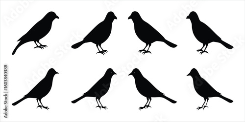 Bird Silhouettes Collection, Black Flying and Standing Bird Shapes for Design Use