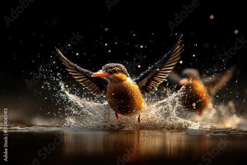 bird, water, flight, splash, wildlife, nature, animal, photo, kingfisher, flying, water bird, splashing, wingspan, feather, aquatic, closeup, detail, motion, speed, moment, beautiful, amazing, powerful, energy, dynamic, hunting, fishing, river, lake, ocean, shore, underwater, gold, orange, brown