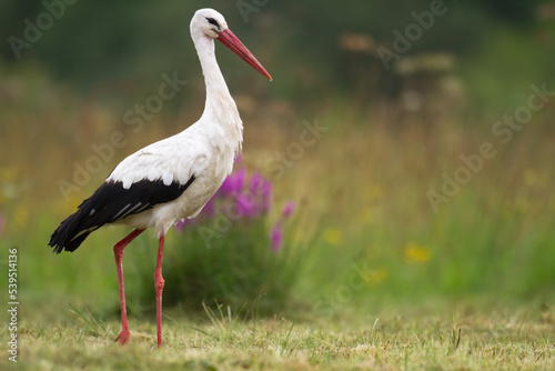 Bird White Stork Ciconia ciconia hunting time summer in Poland Europe