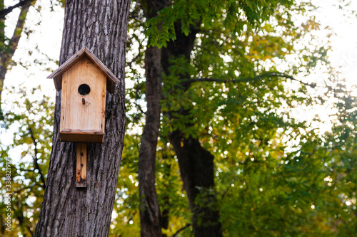 city park, outdoors, care, bird, roof, shelter, sky, animal, build, hole, trunk, rustic, nature, tree, forest, spring, park, green, wood, wooden, tree branch, garden, background, house, bird, summer, home, birdhouse, natural, box, wildlife, nest, season, colours, hand-made, small
