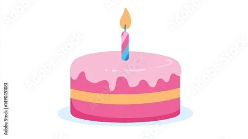 Birthday cake clipart showing pink cake with a candle