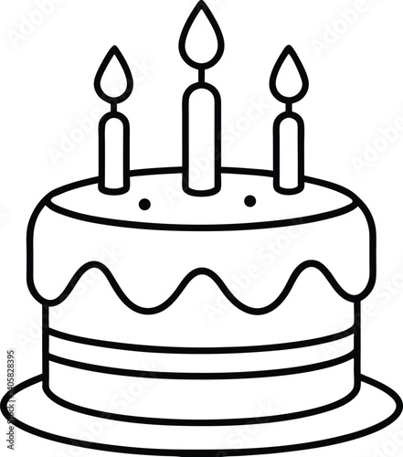 Birthday Cake Outline Icon Line Art Drawing Vector | Celebration, Party & Dessert Illustration