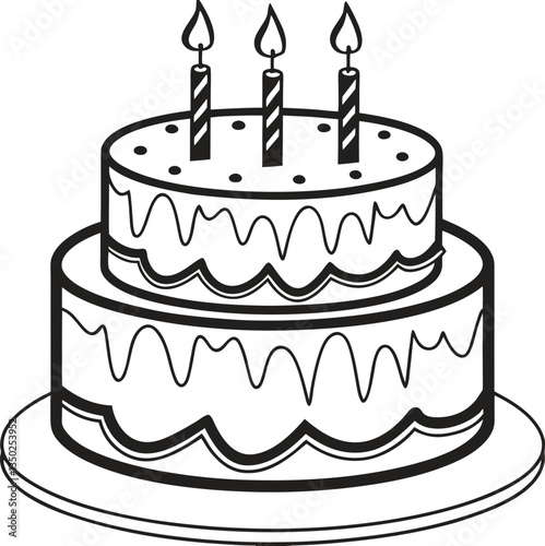birthday, cake, candle, celebration, party, dessert, frosting, tiered, icing, sweet, event, food, baked, treat, holiday, decoration, drawing, design, festive, happy, joyful, graphic, sugar, pastry, delicious, sweet, candlelight, illustration
