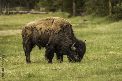 bison, buffalo, us, national, park, animal, male, female, bull, wildlife, west, green, grass, eating, mammal, large, species, horn, nature