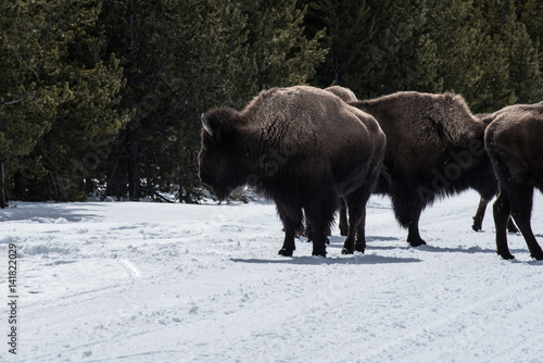 Bison in national park in the winter season