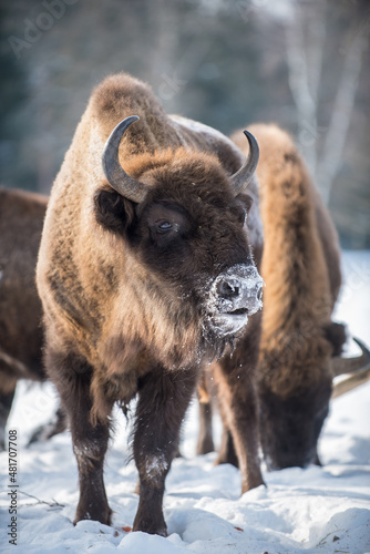 bison, head, animal, wild, europa, winter, forest, lithuania, nature, big, bull, brown, alone