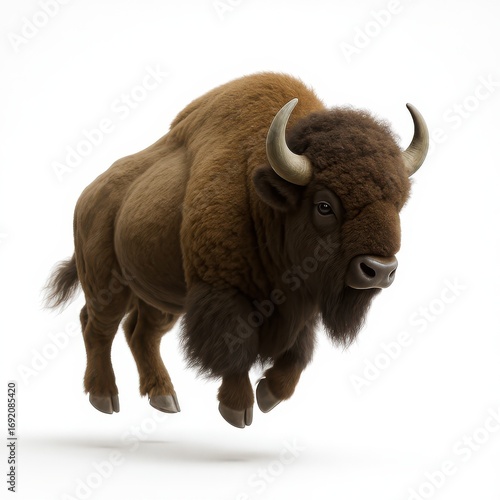 bison, jumping, animal, wildlife, strength, agility, fur, horn, nature, mid-air, power, mammal, wild, dynamic, display, motion, creature, robust, habitat, prehistoric, landscape, majestic, flight, adventure, natural world, freedom, energy, fierce, muscle, environment, iconic, hoofed, herd, strong, agile, terrain, plain
