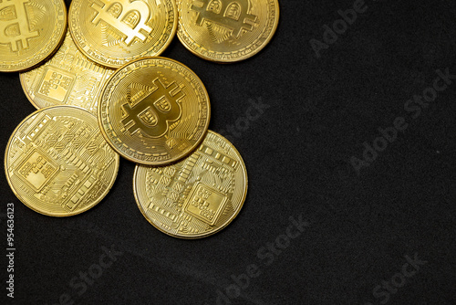 Bitcoin BTC Cryptocurrency Coins. Stock Market Concept