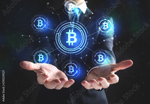 coin, currency, money, financial, virtual, market, cyberspace, payment, banking, economy, symbol, finance, crypto, icon, logotype, flowchart, diagram, connection, network, networking, cyber, circle, line, screen, technology, tech, digital, man, businessman, business, hand, concept, people, night, dark, evening, person, palm, holding, open, reaching, showing, suit, black, background