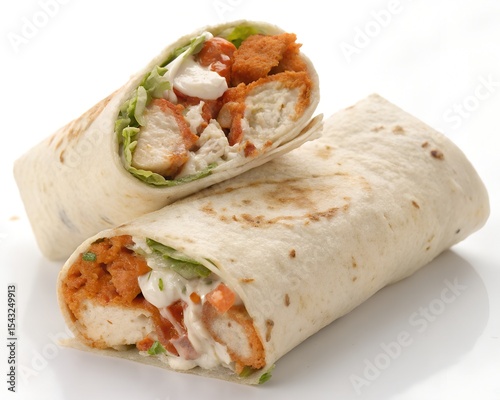 buffalo, ranch, chicken, enclosed, sandwich, spicey, tortilla, juicy, food, white background, lunch, fast food, isolated, meal, snack, meat, bread, dinner, burrito, salad, plate, tomatoes, fajita, lettuce, cookery, white, healthy, vegetable, battercake, tasty