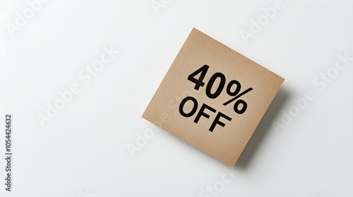 Black '40% OFF' Text on a Khaki Square Paper Note. White Background with Copy Space