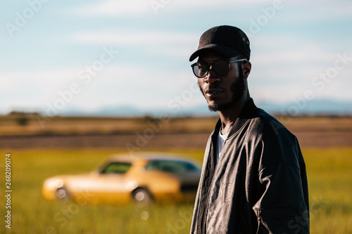 black, autumn, automobile, african american, young, adventure, wild, vintage, vehicle, trip, travel, teenage, sunny, sunglasses, summer, stylish, stop, rural, retro, remote, old, nature, man, male, lifestyle, leisure, gathering, freedom, fall, car, cap, break, person, people, adult, adult, 30s, grown-up