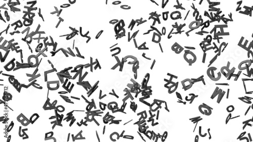 Black alphabets on white background. 3D abstract illustration for background.