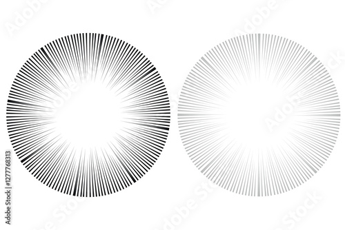 Black and gray radial comics style lines isolated on white background. speed abstract. Vector illustration